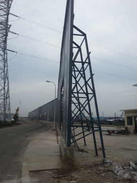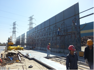项目属于永钢集团下属的联峰能源有限公司的废钢装卸码头,噪声来源于抓手和铲车在装卸废钢的时候所生产的高频噪声,方案与业主达成一至,安装隔声屏障,完工后降噪效果达到白天小于60分贝,夜间小于50分贝,与业主环保部门一次性检测通过。