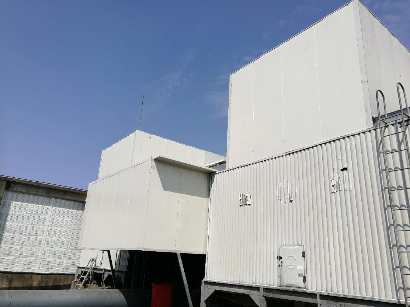 1,上海安亭万科能源有限公司位于嘉定区安亭镇安礼路55号,是集中供暖供冷的大型社区,非住户独立操作的由社区能源公司统一按季供暖供冷。能源车间二楼屋面安装了32组大型冷却塔,万科地产在能源公司的前面地块上建设了住宅区,对其影响了紧邻噪声源的户型客户不太满意,公司领导层非常重视,并邀请上海环境科学院一同设计,冷却塔降噪完工后,经检测已达到社会噪声国家二类排放标准,白天小于60,夜间小于50分贝。