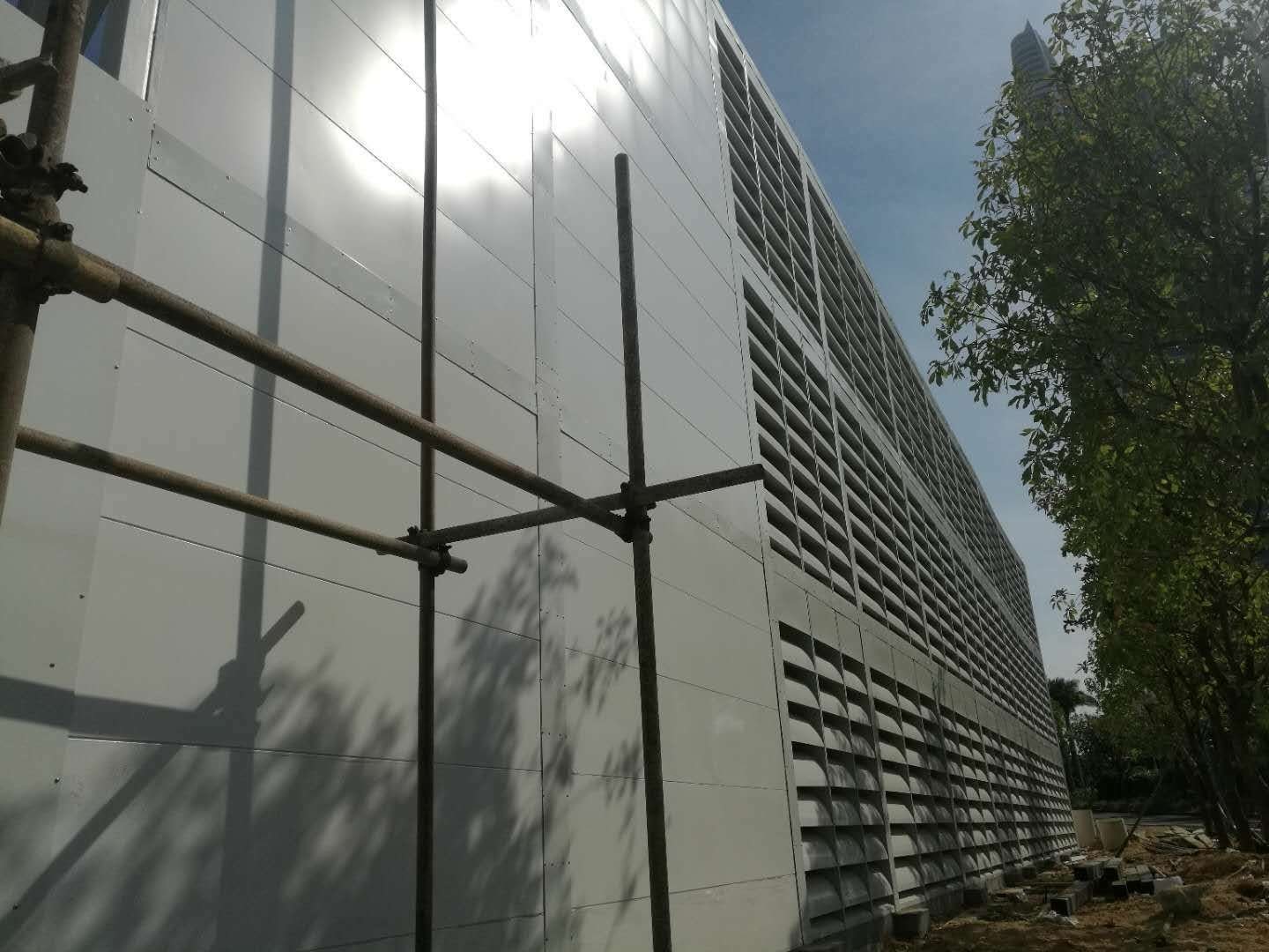 西双版纳万达国际度假区位于西双版纳州景洪市,占地5.3平米公里,是万达集团斥巨资打造的综合型文化旅游项目,拥有一座可同时容纳5万人游玩的水陆两栖综合性主题乐园、三家星级酒店组合而成的山地度假酒店群、一场可同时容纳1183人的傣文化科技舞台秀、"孔雀翎羽"造型的万达广场、三甲医院、中小幼教育配套等七大业态。度假区自持业态投资额高达160亿。项目针对冷却塔设计景观降噪治理,安装隔声屏障和进风消声器组合降噪处理。工程完工与2105年11月28日