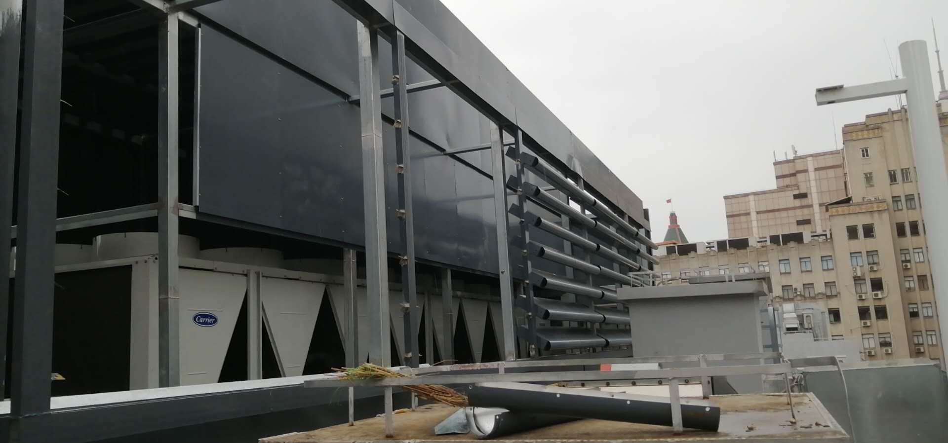 上海美伦大楼屋面热泵机组降噪工程,完工于2019年9月份,噪声已合格达标